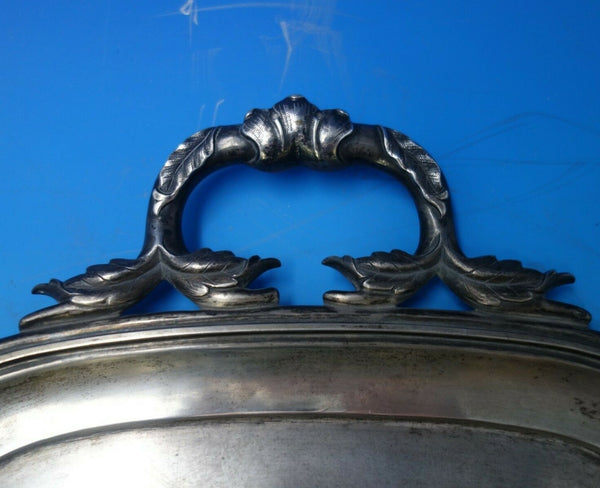 Beautiful Russian 84 silver tea tray featuring applied leaf handles, made in Moscow dated 1881 (maker unknown). This piece measures 20 1/4" (24 1/2" with handles) x 14 3/4" and weighs 46.8 troy ounces. It has applied monogram "G" and is in good vintage condition as shown in the photos. Amazing!