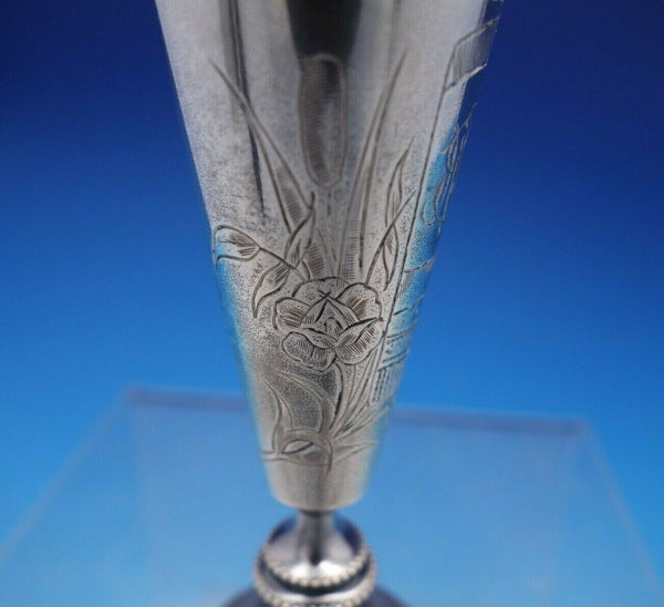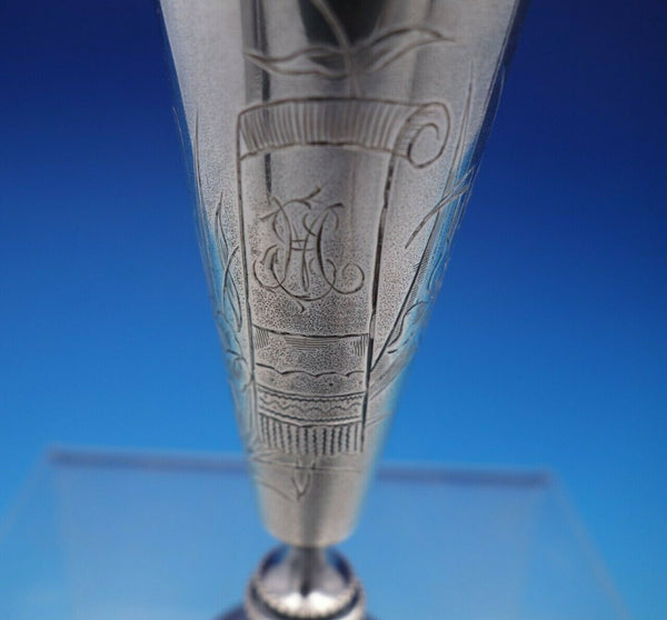Wonderful Russian .875 silver cordial cup with engraved cattails, flowers, and wheat (maker unknown). This piece measures 3 1/2" tall x 1 1/4" in diameter and weighs 0.9 troy ounces. It is monogrammed (see photos) and is in good vintage condition. Marvelous piece!