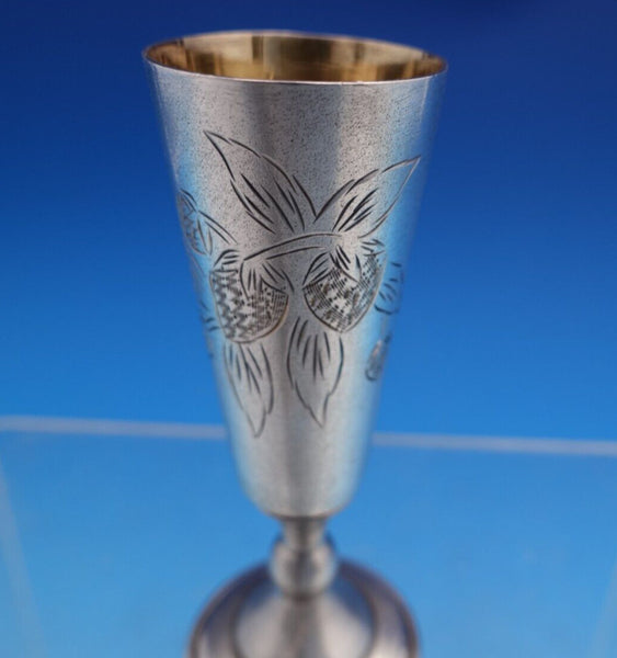 Exceptional Russian .875 silver cordial cup with gold washed interior and bright-cut with strawberries, circa 1958-1994 (maker unknown).