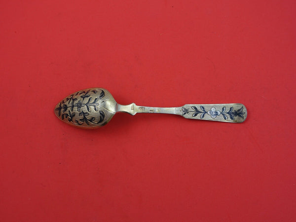 Russian sterling silver Dessert Spoon, Moscow 1835, 84=.875 silver, vermeil with niello enamel on both side of the bowl and handle with flowers 6 3/4" (maker unknown). It is not monogrammed and is in excellent condition.