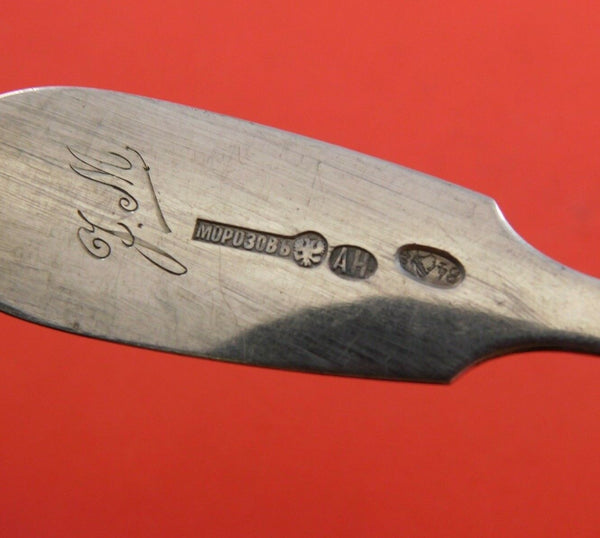 Russian sterling silver Dessert Spoon 7" (St. Petersburg) circa 1899-1908 (maker unknown). It is monogrammed (see photos) and is in excellent condition.