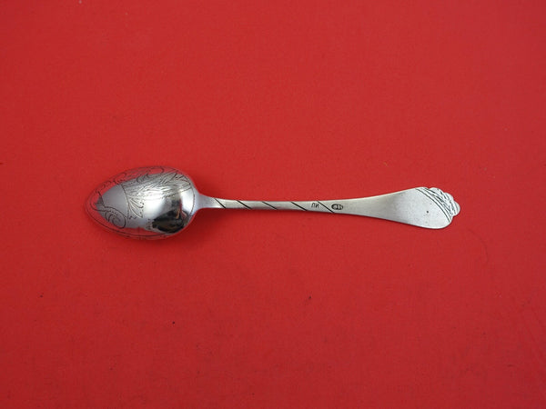 Russian sterling silver Teaspoon, mark 84=.875 silver brite-cut on reverse of bowl 5 3/4" (maker unknown). It is not monogrammed and is in excellent condition.