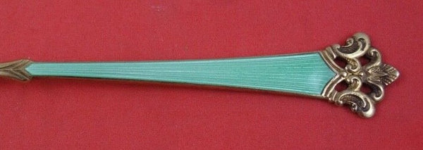 Sterling silver Demitasse Spoon with Light Green Enamel Vermeil 3 3/4" in the pattern Anitra by Th. Olsens. It is not monogrammed and is in excellent condition.