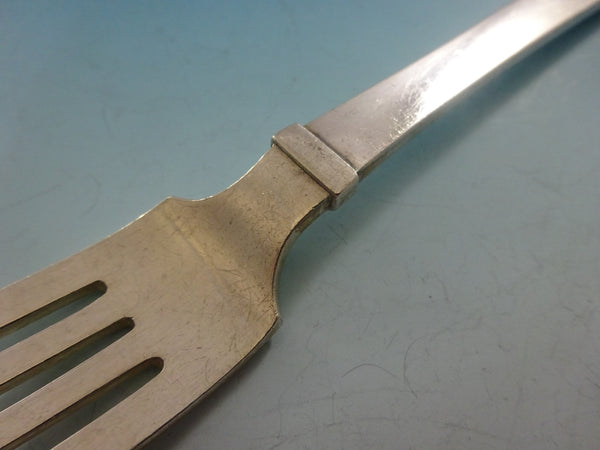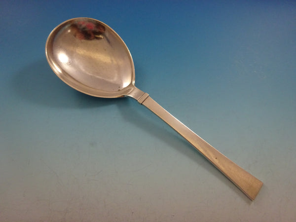 BELL BY HANS HANSEN DANISH MID-CENTURY MODERN sterling silver Flatware set - 58 Pieces. This set includes:8 KNIVES, 8 5/8" 8 FORKS, 7 1/4" 8 SALAD FORKS, 6 1/2" 8 TEASPOONS, 5 3/8" 8 PLACE SOUP SPOONS, 7" 8 HOLLOW HANDLE BUTTER SPREADERS, 5 7/8" 8 FISH KNIVES, ALL-STERLING, 8 1/2" 1 COLD MEAT FORK, 2-TINE, 8 1/4" 1 BERRY SPOON, 8 5/8" Includes bonus brand new storage chest - styles vary.