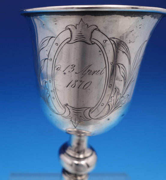 Superb Danish .830 silver cup or goblet featuring engraved crest and scrollwork (maker unknown). This cup measures 6" tall x 2 3/4" and weighs 3.1 troy ounces. It is engraved on both sides (see photos), and is in good estate condition as shown in the photos. Wonderful!