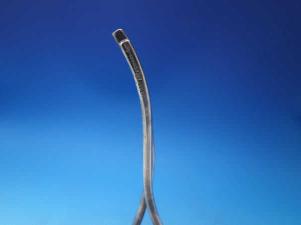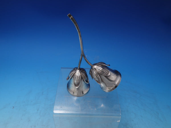 Unusual Danish sterling silver by Hans Jensen Double Dinner Bell, modernist form with leaves and stem, marked #889. It bears a EL whale stamp - imported by Eisenberg Lozano. It measures 6 1/2" tall and weighs 4.66 troy ounces. A work of art!
