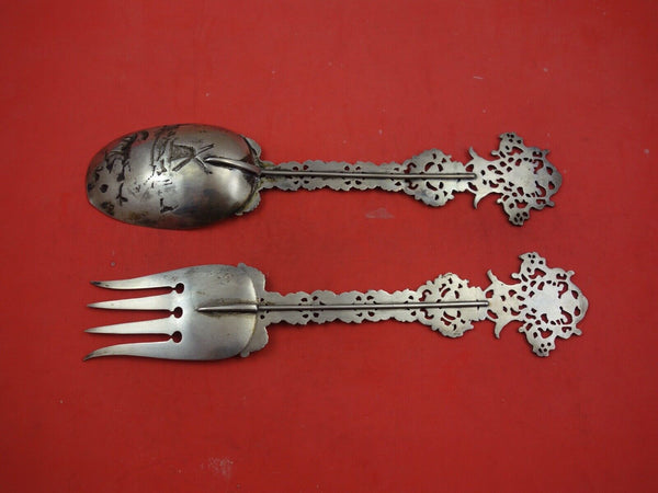 Dutch sterling silver Salad Serving Set by Ollanu .800 silver with windmills c. 1920, 10 1/2" This set is not monogrammed and is in excellent condition.