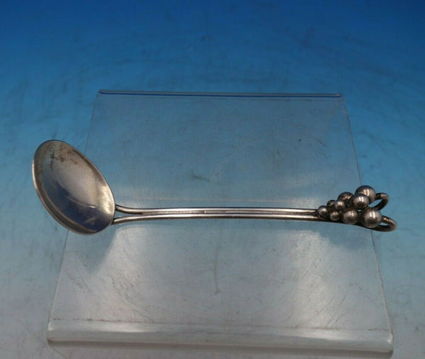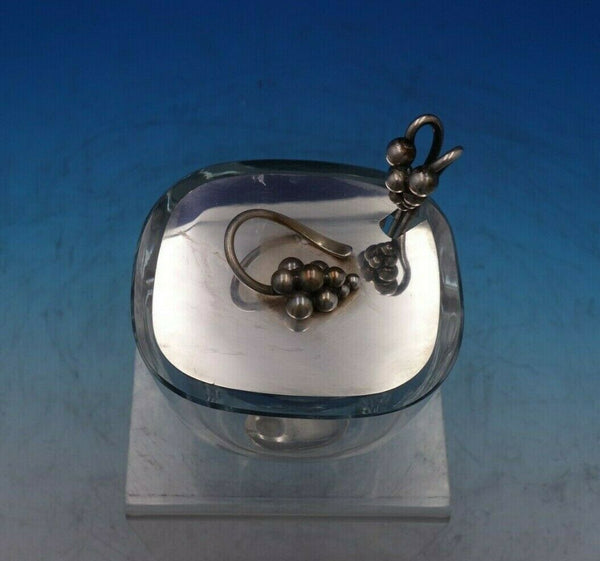 Stylish E. Dragsted cut crystal jelly jar with sterling silver lid and spoon marked #1775. The lid and spoon have figural grapes. The jar measures 4 1/4" tall x 4", and the spoon measures 5 3/4". It is not monogrammed and is in good vintage condition. Lovely!