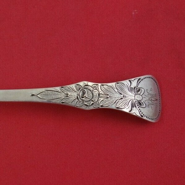 Sterling silver Cream Soup Spoon 7" in the pattern Flat Rose by Magnus Aase. It is monogrammed (monos vary) and is in excellent condition.