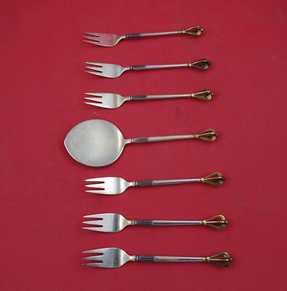 Danish sterling silver Oyster Set 7-Piece in fitted box in the pattern Golden Crown by W and S Sorensen. This set includes: