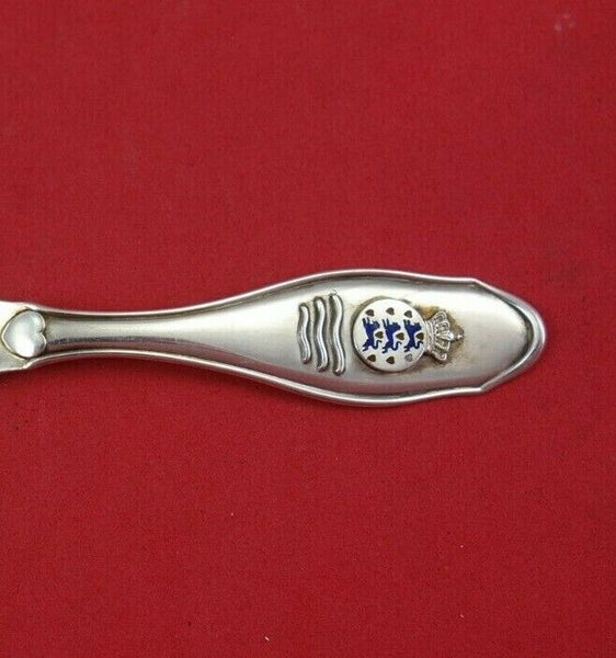 Danish sterling silver Tea Caddy Spoon with Enamel Lions 4 1/4" by Grann and Laglye. It is not monogrammed and is in excellent condition.