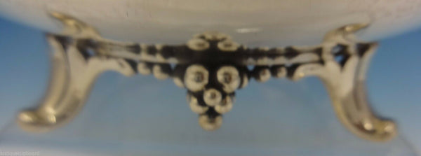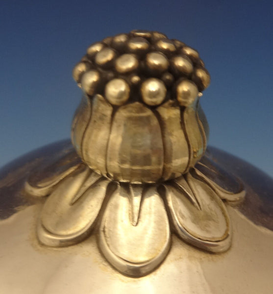 This lovely sterling silver 4-piece tea set was made by Grann Laglye of Denmark. The pieces have a 3-D flower motif with beads on the finials, handles, and detail by the feet. Retailed by Dana Comp mark. The set dates from the 1940's. The set includes: