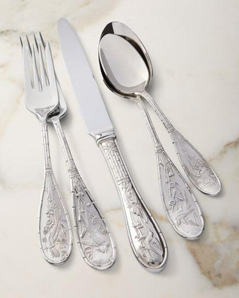 Like tiny works of art, Ricci's Bird and Bamboo flatware transforms the