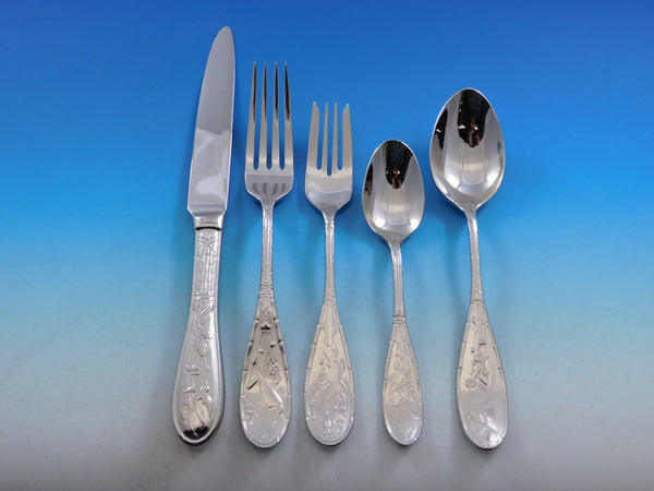 Japanese and Audubon by Tiffany. Each piece is decorated with intricate designs
