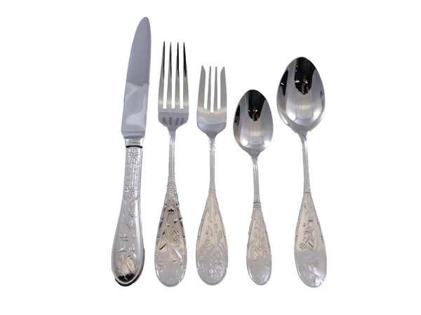 stainless steel 5-piece place setting. This multi-motif pattern is similar to