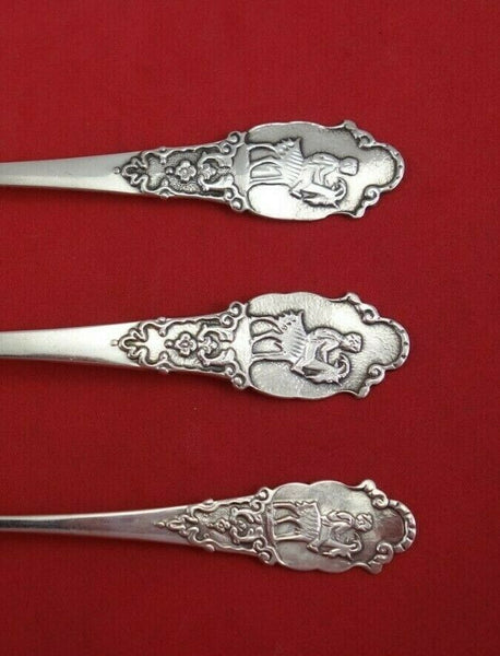 Norwegian .830 silver three-piece Child's Set (maker unknown). This set features a child riding on a goat (handle motif) and includes: