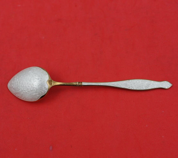 Norwegian Sterling Silver Coffee Spoon Vermeil Enameled w/ Design on Back 5 3/8"