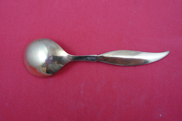 Norwegian sterling silver by Ohar Hval, Sugar Spoon, vermeil enameled feathered handle in red, 5 1/4". It is not monogrammed and is in excellent condition.