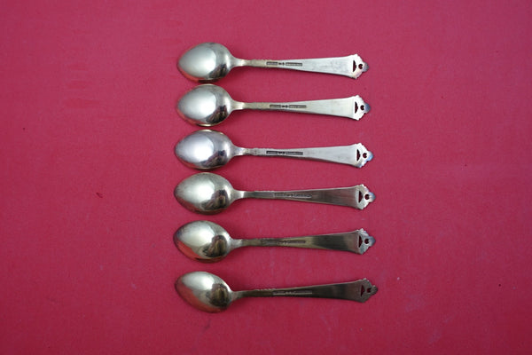 Sterling Silver Demitasse Spoon Set of 6, vermeil enameled in lavender, dark blue, turquoise, red, yellow and green 3 3/4" in the pattern Odel by Nils Hansen (Norway). It is not monogrammed and is in excellent condition.