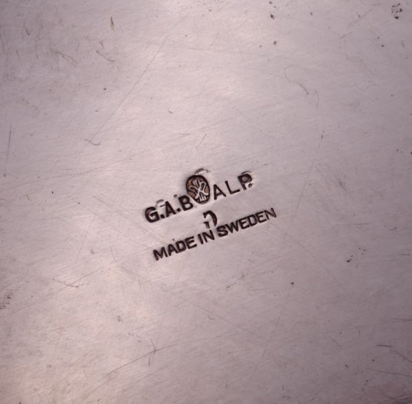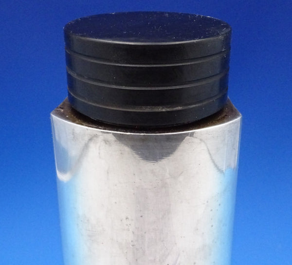 Wonderful Swedish silverplate modernistic cocktail shaker with wood top (maker unknown). This piece measures 8 7/8 tall x 3 3/4". It is not monogrammed and is in good estate condition as shown in the photos, with wear to the wood as expected with age. Fabulous piece!