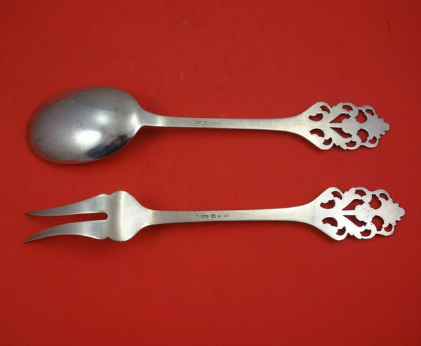 Viking Rose by Th. Marthinsen Norwegian .830 Silver Salad Serving Set 2pc 9 1/4"