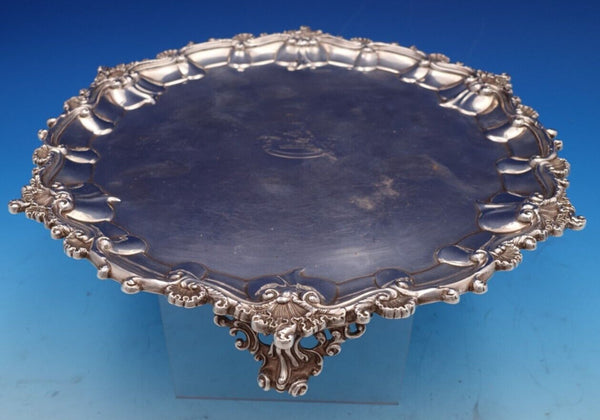 Beautiful Alfred Benson and Arthur Henry Benson English Victorian sterling silver footed salver tray marked #1511, made in London circa 1896. It was retailed by Hunt and Roskell (formerly Storr and Mortimer).
