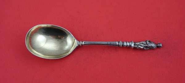 Sterling silver Berry Spoon, gold washed Sheffield 1892 HA = Atkin Brothers with 3-D figural handle of man and child, 8 1/2" in the pattern Apostles by English Sterling. It is not monogrammed and is in excellent condition.