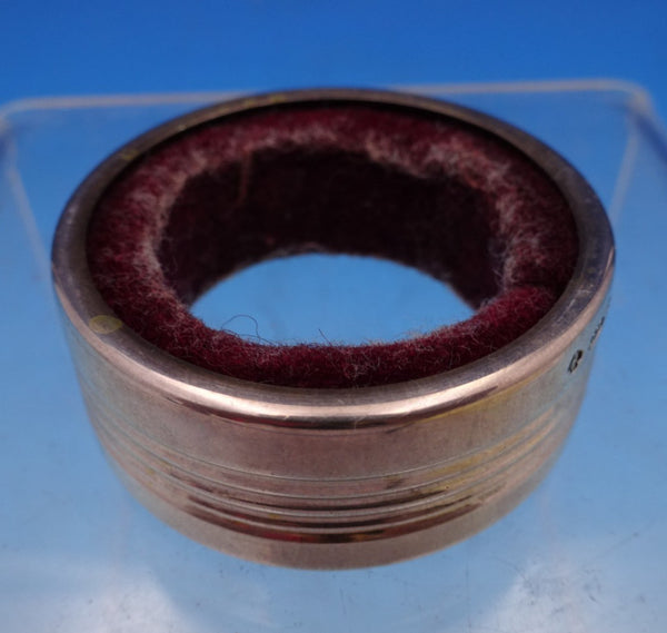 Wonderful Asprey and Garrard English sterling silver wine collar with fabric interior. This piece measures 3/8" tall x 1 1/2" in diameter and weighs .48 troy ounces. It is not monogrammed and is in good estate condition as shown in the photos, with wear to the fabric as expected with age. Terrific piece!