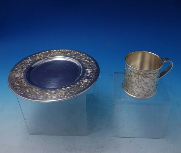 Charming Asprey of London sterling silver two-piece child's set featuring playful bunnies. This set includes: