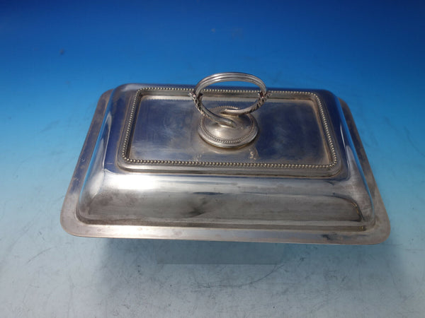 Beaded English Silverplate Top of Vegetable Dish removable handle (#6124)