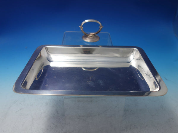 Beaded silverplate Cover for vegetable dish with removable branch-style handle,