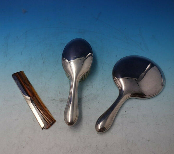 Carrs English sterling silver three-piece vanity set in fitted wood box marked #1100, Sheffield circa 2012. This set includes: