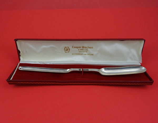 English Estate sterling silver Marrow Scoop 9 1/2" in original box. It was made in Sheffield by Cooper Brothers and Sons, circa 1976. The scoop is not monogrammed and is in excellent condition, with the box being offered as-is with hinge side broken.