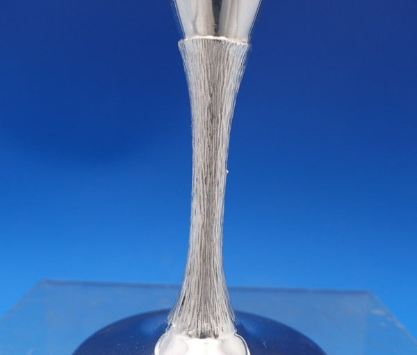Beautiful E.H. Parkin and Co sterling silver water goblet made in Sheffield circa 1976. This piece features a bark texture on the stem. The goblet measures 7" tall x 2 3/4" (base) and weighs 7.64 troy ounces. It is not monogrammed and is in good estate condition. Exceptional!