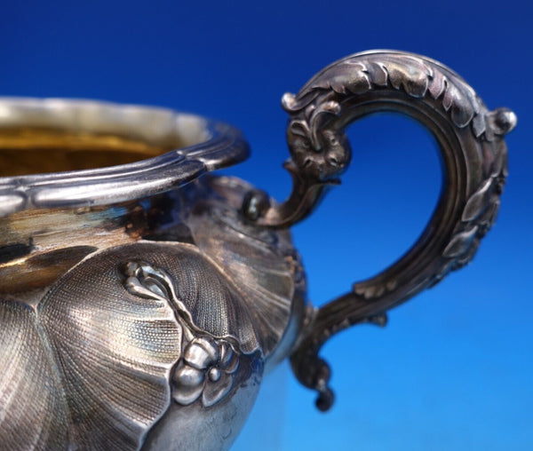 1 - Sugar (open with gold washed interior): Measures 4" tall x 8 3/4" and weighs 12.4 troy ounces.
