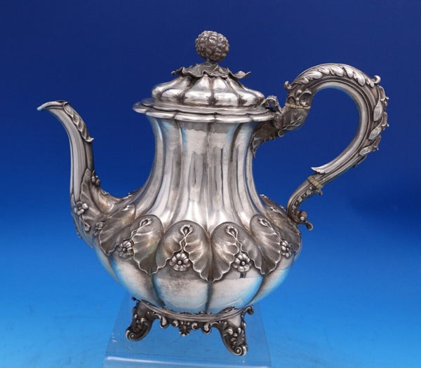 Edward Barnard English Georgian Sterling Silver Tea Set 4pc 3-D Gourds (#7502)