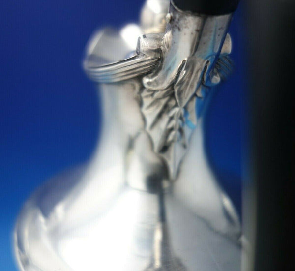 Fabulous Edward Fernell English Georgian sterling silver wine ewer / wine pitcher with lid and ebony handle, made in London 1794. This pitcher features an applied leaf design.
