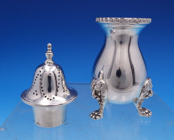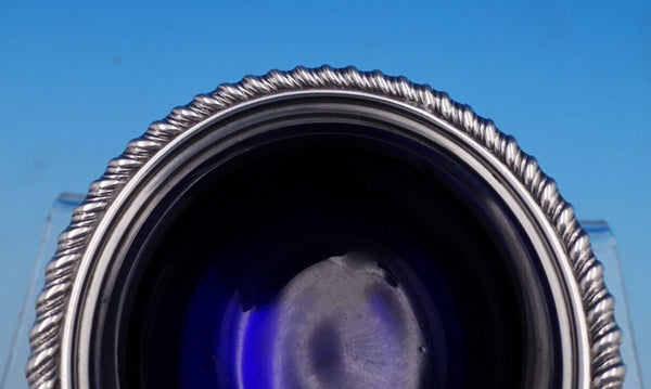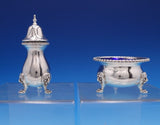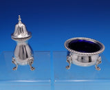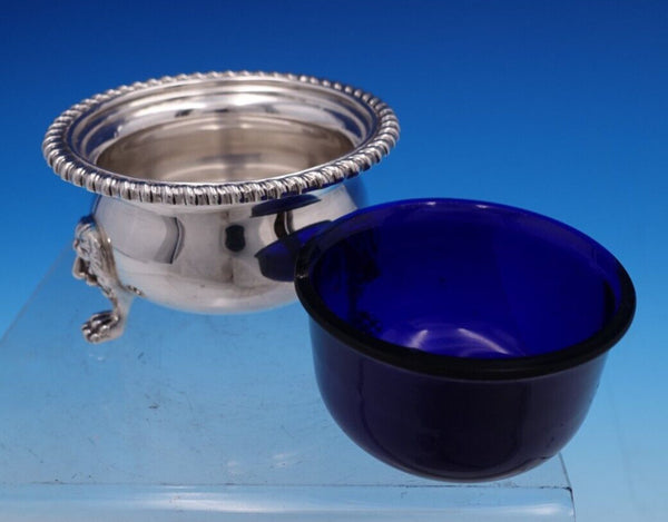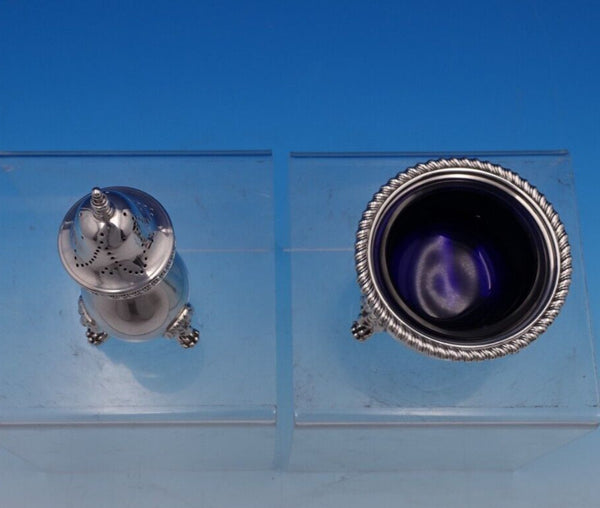 Gorgeous Ellis Jacob Greenberg English Estate sterling silver salt dip and pepper two-piece set, made in London circa 1928. This set features a cobalt liner and lion feet. This set includes: