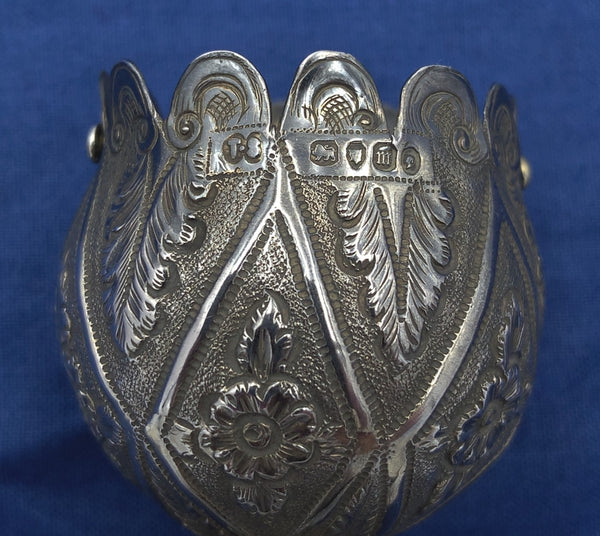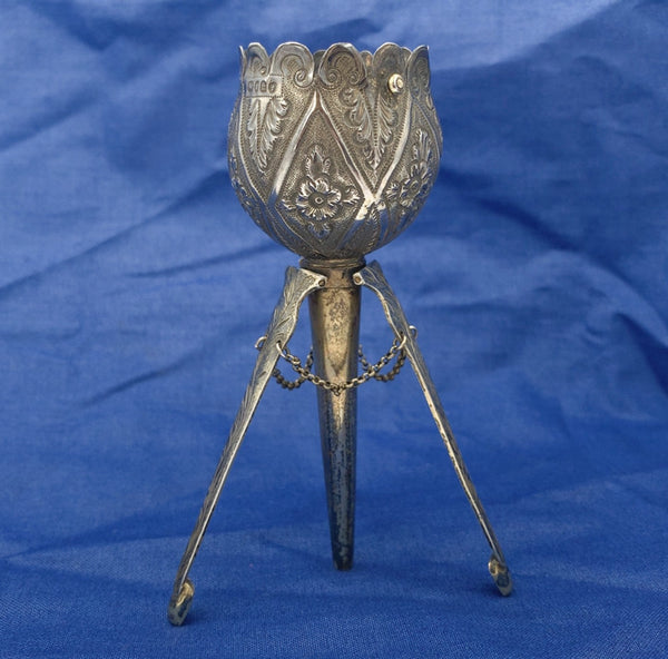 English 1867 Sterling Tussie Mussie with Tripod Base Hand Chased (#J7458)