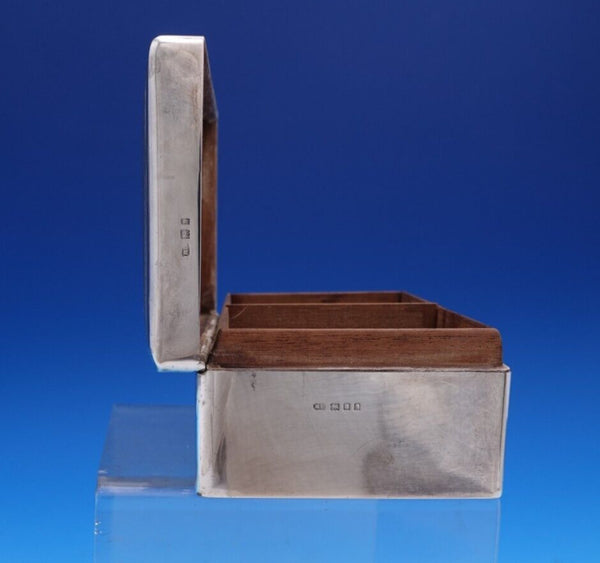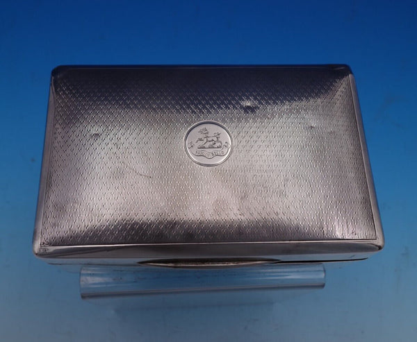 Wonderful English Estate sterling silver cigarette box with engine turned lid made in London circa 1923 (maker unknown; possibly made by Lambert and Co.)