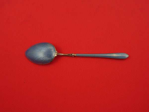 English estate sterling silver Demitasse Spoon, vermeil with light blue enamel on both sides 3 7/8", probably Norwegian but only hans English import marks, (maker unknown). It is not monogrammed and is in excellent condition.