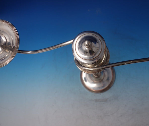 Wonderful English Georgian silver on copper candelabra pair, circa 1790 (maker unknown). The pieces measure 15" x 15". They are not monogrammed and are being offered as-is with some silver loss. Beautiful!