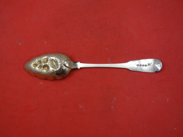 English Georgian c.1812 London sterling silver Berry Spoon, gold washed bowl with chased fruit, 8 3/4". It is monogrammed (monos vary) and in excellent condition.