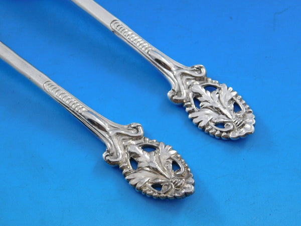 Early English Georgian London sterling silver pierced leaf motif handle design flatware set, 24 pieces. This set includes: