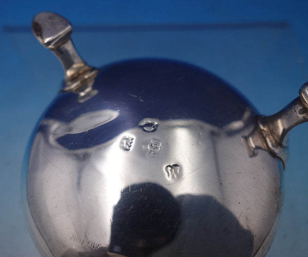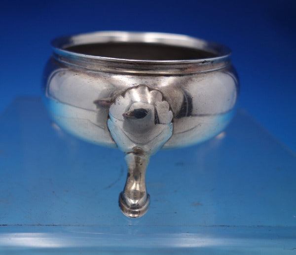 Wonderful English Georgian sterling silver salt cellar master with feet made in London circa 1746 (maker unknown). The salt cellar measures 2 3/4" diameter and weighs 2.96 troy ounces. It is not monogrammed and is being offered as-is due to worn condition as shown in the photos. Terrific piece!