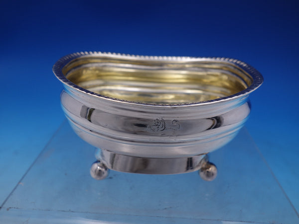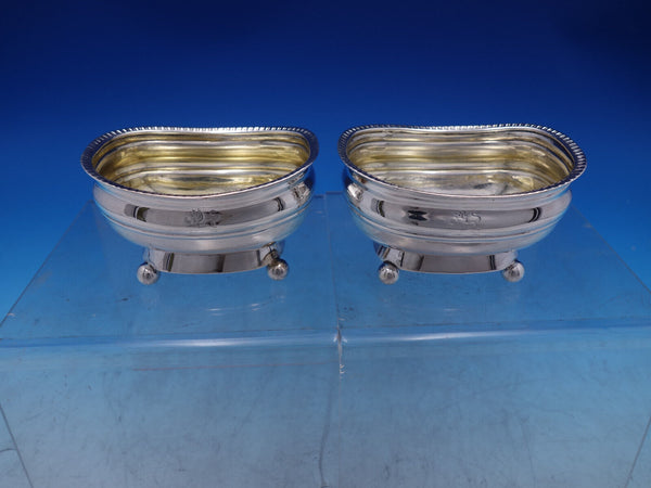 Sterling silver Pair of Master Salt Cellars with lightly gold-washed interiors and ball feet by Thomas Watson, Newcastle circa 1815. They measure 3 5/8" x 2 5/8" x 2" tall and