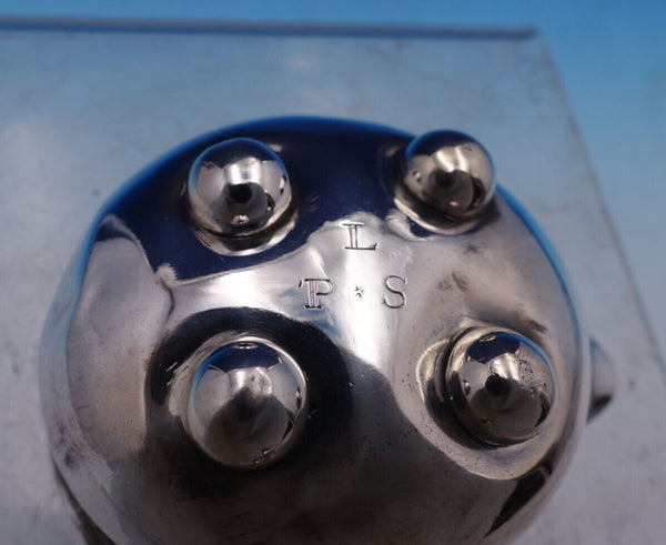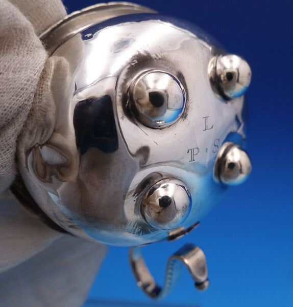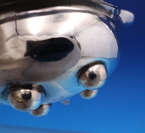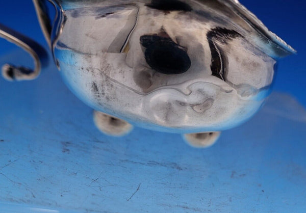 This sauce boat measures 3 1/8" (l) x 2 1/2" (w) x 1 1/2" (h) and weighs 1.42 troy ounces. It has a monogram on the base "L P S" (see photos). It is being offered as-is due to some dents. Wonderful piece!