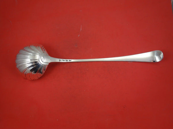 English Georgian sterling silver Soup Ladle, London 1764 marked 800 shell bowl reeded edge engraved eaglegriffin, 14 1/2". It is monogrammed (monos vary) and is in excellent condition.