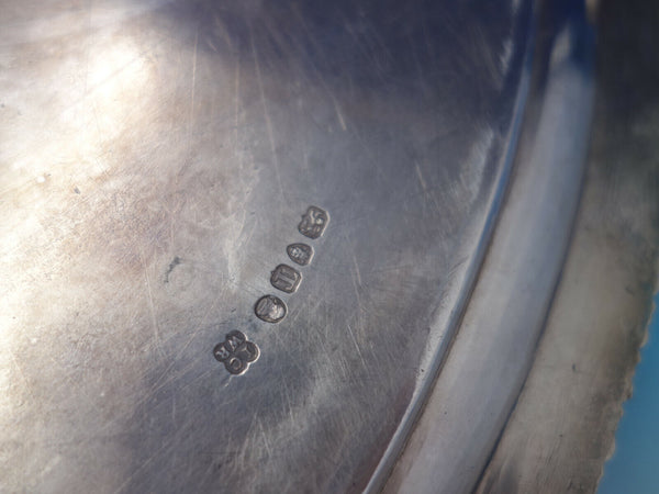 1814. It weighs 106.2 troy ounces and it measures 21 1/2"L x 16"W without the handles. (It measures 24 1/4" long with handles). It is not monogrammed and is in very good vintage condition. Scalloped design with unique leaf detail on handles. Fabulous tea tray! This is a rare opportunity.