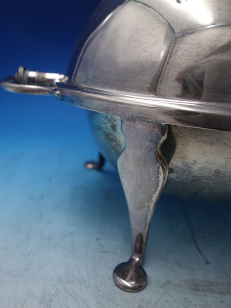 Lovely silver on copper warming dome on stand, circa 1800 (unmarked, unknown maker). This piece measures 8" x 1 1/2". It is not monogrammed and is in good vintage condition, sold as-is. Wonderful!